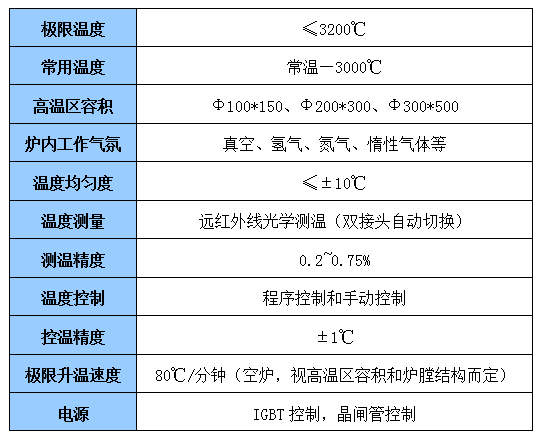 ?。?)可達到3200℃,常用溫度3000℃的高溫爐體,滿足各種材料的燒結和石墨化。