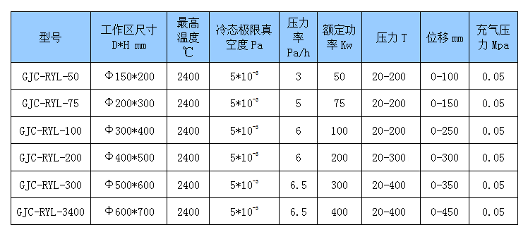 (4)溫度范圍廣,加熱元件多種可選,例如石墨、鉬、鎢、鉭等,在合適的保護氣氛中,溫度可達2400℃ ,可適應(yīng)不同材料的熱壓燒結(jié);